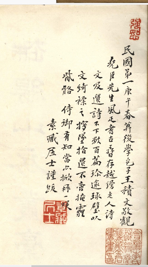 然而,歷史又如此有趣。鮑存曉兒子鮑元暉,字堯臣,富而好文,民國(guó)間從李慈銘后人手中購(gòu)得其著述稿本,今藏上海圖書(shū)館的《越縵堂所著書(shū)》稿本九種,即是藏品之一,鈐“鮑元暉”“堯臣”白文二印。其一《蘿庵日抄》,卷二末王積文跋云:“右《蘿庵日鈔》,……。汲脩主人堯臣先生得諸李氏后人。見(jiàn)其篇附考證,評(píng)騭諦當(dāng),裝裱成帙,洵有心人也。愿鮑氏后晜當(dāng)縑眎之。庚午莫春后學(xué)邑子王積文謹(jǐn)跋?!备绠?dāng)是民國(guó)十九年(1930)。鮑元暉并請(qǐng)鄉(xiāng)友王繼香、王積文、曹振采、孫豫、孫步瀛、素臧居士、健堂等人題跋《越縵堂所著書(shū)》,又于民國(guó)二十一年(1932)跋《蘿庵游賞小志》云:“所謂敘吾鄉(xiāng)山水情景,不啻如繪。奇文妙筆,如身入其中,俗慮頓銷,明月清風(fēng)朗然,在貺我誠(chéng)不少矣?!保ā对娇z堂所著書(shū)》,上海圖書(shū)館藏稿本)對(duì)李慈銘描繪山陰道上山水風(fēng)情尤三致意焉。
