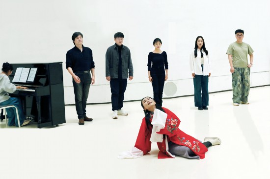 在這次歌劇《青衣》里,主創(chuàng)團(tuán)隊(duì)也更聚焦將戲曲元素納入歌劇的表演形式中。為了確保歌劇中的戲曲元素純粹正宗,主創(chuàng)團(tuán)隊(duì)專程前往上海戲劇學(xué)院,向著名戲曲表演藝術(shù)家趙群請教學(xué)習(xí)。
