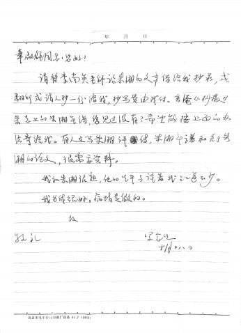 請(qǐng)將李南英(應(yīng)是“蓉”)老師論朱湘的文章借我抄錄,或翻印或請(qǐng)人抄一份給我,抄寫(xiě)費(fèi)由我付。香港《抖擻》雜志上的朱湘年譜,您見(jiàn)過(guò)沒(méi)有? 希望能按上面的辦法寄給我。有人在寫(xiě)朱湘評(píng)傳,朱湘年譜和關(guān)于朱湘的論文,很需要資料。