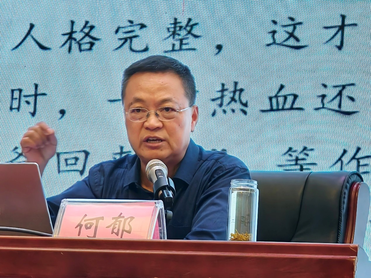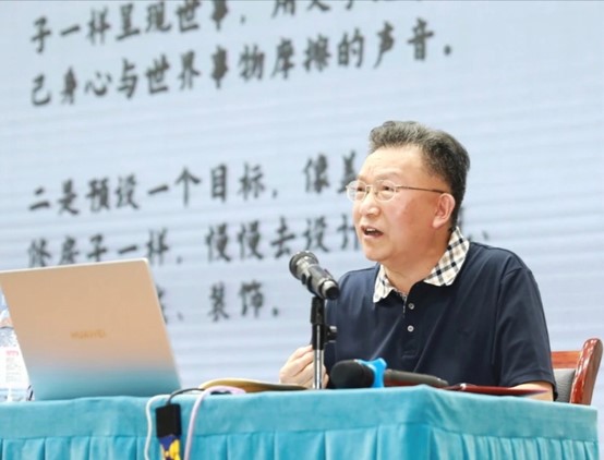 18日上午,中國自然資源作協(xié)全委蔣宜茂在潼南第一中學(xué)校為近千名師生講授文學(xué)課《詩是心田蒸餾出的露珠》。他從“為什么要寫、寫什么、怎么寫”三個方面分享創(chuàng)作感悟,并介紹詩歌寫作的“三性”和詩歌意象選擇的四個層面。北京市特級教師,統(tǒng)編本高中語文教材和教參編寫者之一何郁同期在潼南中學(xué)校作題為《文學(xué)修養(yǎng)與語文教學(xué)質(zhì)量》的講座時,強調(diào)文學(xué)教育之于高中語文教育的重要性,并指出文學(xué)修養(yǎng)之于語文課堂教學(xué)、高考測試、單篇閱讀、組合課文教學(xué)與單元整合、專業(yè)進(jìn)階之道的實施辦法,助力高中語文教師文學(xué)素養(yǎng)提升。