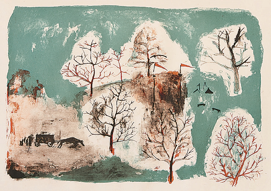 “我一連幾小時觀察平靜的水面上空氣的流動,樺樹與楓樹葉在風中蕩漾?!?0年前,15歲的趙無極來到杭州,入讀國立杭州藝專(現(xiàn)中國美術學院),正式開啟了自己的藝術生涯。在西湖邊的沉思引發(fā)了趙無極終生的藝術探索。西湖,不僅從此成為他縈繞終身的藝術現(xiàn)場,也成為他晚年時常思念與回望的故鄉(xiāng)。此次馬爾凱捐贈的212件趙無極作品,包括油畫作品10件、版畫174件(包括版畫插圖書15套)、瓷繪作品28件,其中油畫作品《我在杭州的家》和《無題(寺廟和墳墓)》就是趙無極在杭州任教階段的重要創(chuàng)作。