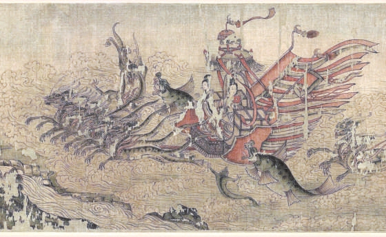 作為一種古老的文學(xué)體裁,中國神話是早期華夏兒女通過超現(xiàn)實(shí)的方式,對自然和人本身做出的具有意味的創(chuàng)造,反映了他們的淳樸思想和對自然現(xiàn)象及社會(huì)生活的原始幻想?!堵迳褓x圖》是東晉畫家顧愷之以建安文學(xué)代表人物曹植的《洛神賦》為原型,創(chuàng)作的愛情主題的繪畫。在《洛神賦》這篇駢文中,曹植以華麗的辭采、細(xì)致的描述、豐富的想象,虛構(gòu)了自己在洛水之濱與洛神邂逅,彼此生發(fā)愛戀和傾慕,但因“人神道殊”,愛而不得的悲傷故事;洛神“若往若還”,曹植“足往神留”,失落、惆悵躍然紙上。而顧愷之以繪畫的形式,充分發(fā)揮“人神一體”的想象,含蓄表達(dá)《洛神賦》字里行間流淌的精神向往,由此成就了中國美術(shù)史上第一幅以文學(xué)作品為創(chuàng)作依據(jù)的繪畫作品。