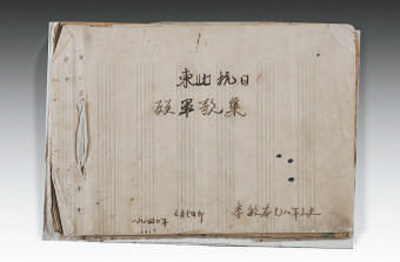 1940年夏,抗聯(lián)三路軍總指揮部在德都縣(今黑龍江省五大連池市)北部朝陽(yáng)山密林后方基地舉辦軍政干部訓(xùn)練班??傊笓]部機(jī)要秘書兼電臺(tái)臺(tái)長(zhǎng)崔清洙收集整理部隊(duì)傳唱的革命歌曲,手工刻印成冊(cè)分發(fā)給指戰(zhàn)員。女戰(zhàn)士李敏冒著戰(zhàn)火保存下這本歌集,1948年捐贈(zèng)東北烈士紀(jì)念館,是現(xiàn)存唯一完整版本。
