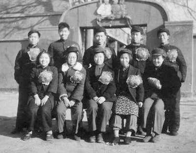 黃會林(前排左二)參軍入伍時,與同學(xué)們的合影。