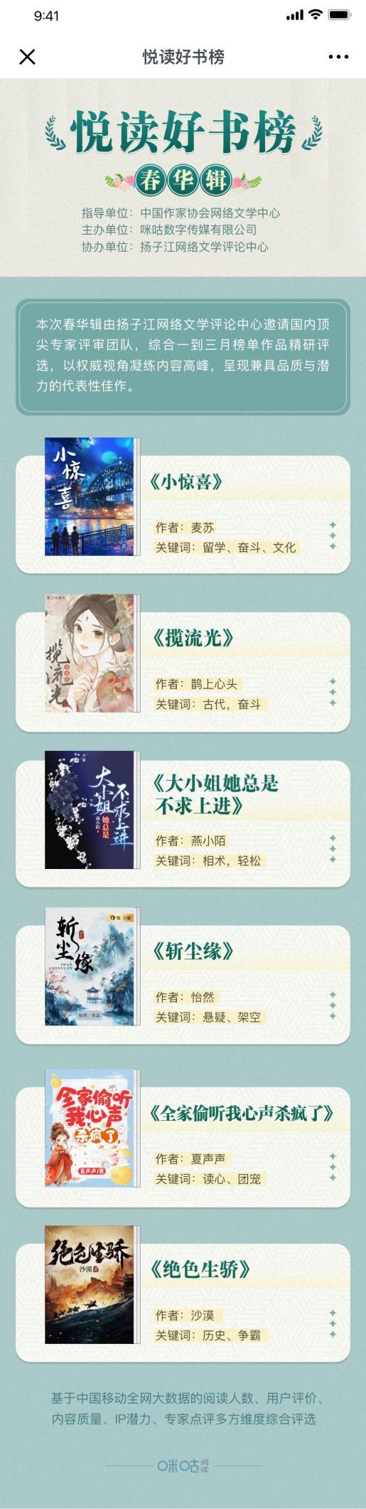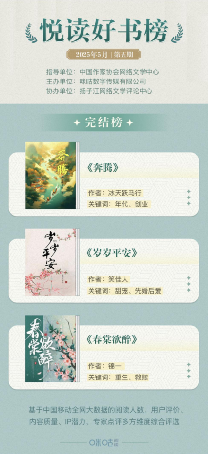 網(wǎng)文類型創(chuàng)新與時代價值同頻共振,咪咕“悅讀好書榜”第五期榜單揭曉
