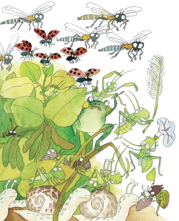 蟈蟈想:要說(shuō)逃命,那還是我快!他膝蓋往后彎,腿一蹬就不見(jiàn)了。
