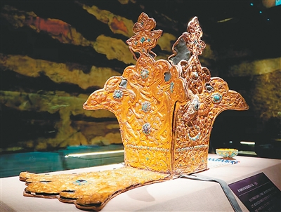 出土于青海省烏蘭縣泉溝一號(hào)墓的王冠修復(fù)后重現(xiàn)光彩。