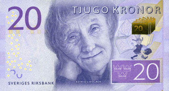 瑞典二十克朗紙幣上的皮皮和林德格倫
