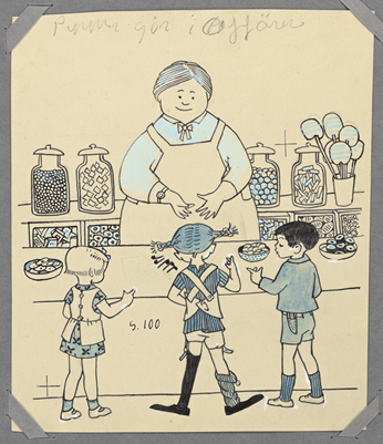 此外,我們不能忘記,一位杰出的插畫師讓皮皮逼真地走出了紙面。1916年生于丹麥的英格瑞德·尼曼,童年因一場(chǎng)事故使得一只眼睛失明。1935年入哥本哈根皇家藝術(shù)學(xué)院學(xué)習(xí)了一陣。兩年后遇瑞典畫家和詩(shī)人阿恩·尼曼,二人結(jié)婚生子,婚姻只維持了幾年。她留在斯德哥爾摩畫畫。1945年借《長(zhǎng)襪子皮皮》的插畫成名。