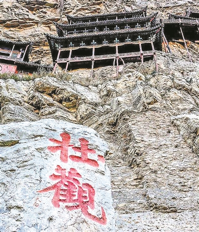 大部分去過懸空寺的人,都會(huì)留意到寺外峭壁上的“壯觀”二字。據(jù)說這是詩人李白當(dāng)年游覽懸空寺時(shí)留下的墨寶。但細(xì)心的人們發(fā)現(xiàn),這個(gè)“壯觀”的“壯”字比正確的寫法多了一點(diǎn),而且同樣傳為李白手書的“壯觀”兩字出現(xiàn)在全國至少有五處地方,這又是怎么一回事呢?