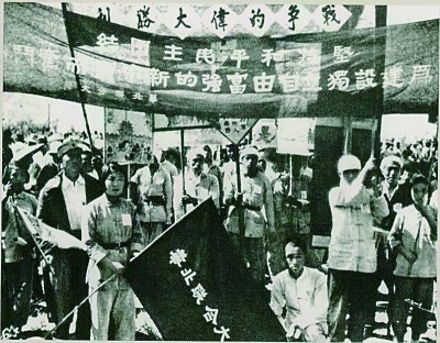 1945年,華北聯(lián)大在張家口慶祝勝利。 資料圖片