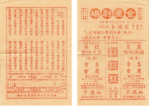 至于駭人聽(tīng)聞的血腥命案怎樣“滑稽”起來(lái),無(wú)從知曉,倒是戲單“簡(jiǎn)略本事”里的一段描述,讓人略略感到有點(diǎn)“滑稽”:“……是夜乃夫賭畢返舍,周氏待夜半人靜詹云影正在熟睡時(shí),竟將親夫謀斃,終被二房東王瞎子發(fā)覺(jué),報(bào)局捉兇禁入囹圄,而周氏悔之晚矣,終受法律之裁判”,頗有幾分“聾子聽(tīng)見(jiàn)啞巴說(shuō)瞎子看見(jiàn)鬼”的搞笑意味。