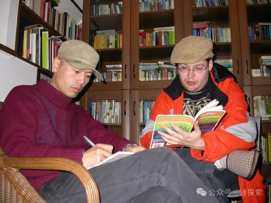 2006年與黃梵第一本詩(shī)歌英譯集譯者、漢學(xué)家石峻山在黃梵家書(shū)房合影