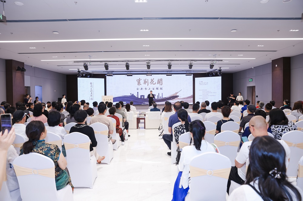 中國書法家協(xié)會(huì)名譽(yù)主席蘇士澍,中國版權(quán)協(xié)會(huì)理事長閻曉宏,紫荊文化集團(tuán)總經(jīng)理文宏武,紫荊文化集團(tuán)董事宮秉祥,中國文物交流中心主任、黨委書記譚平,香港中聯(lián)辦駐北京聯(lián)絡(luò)部副主任張有才,香港特區(qū)政府駐北京辦事處副主任阮慧賢,北京市文聯(lián)黨組成員、副主席白靖毅,北京經(jīng)開區(qū)工委副書記石威,香港聯(lián)合出版集團(tuán)副董事長兼總裁李濟(jì)平,北京經(jīng)開區(qū)文聯(lián)主席趙雅娟等領(lǐng)導(dǎo)嘉賓出席開幕儀式。來自京港兩地的書法家代表、文化機(jī)構(gòu)負(fù)責(zé)人、藝術(shù)界專家學(xué)者、企業(yè)代表以及社會(huì)公眾150余人參加開幕儀式。