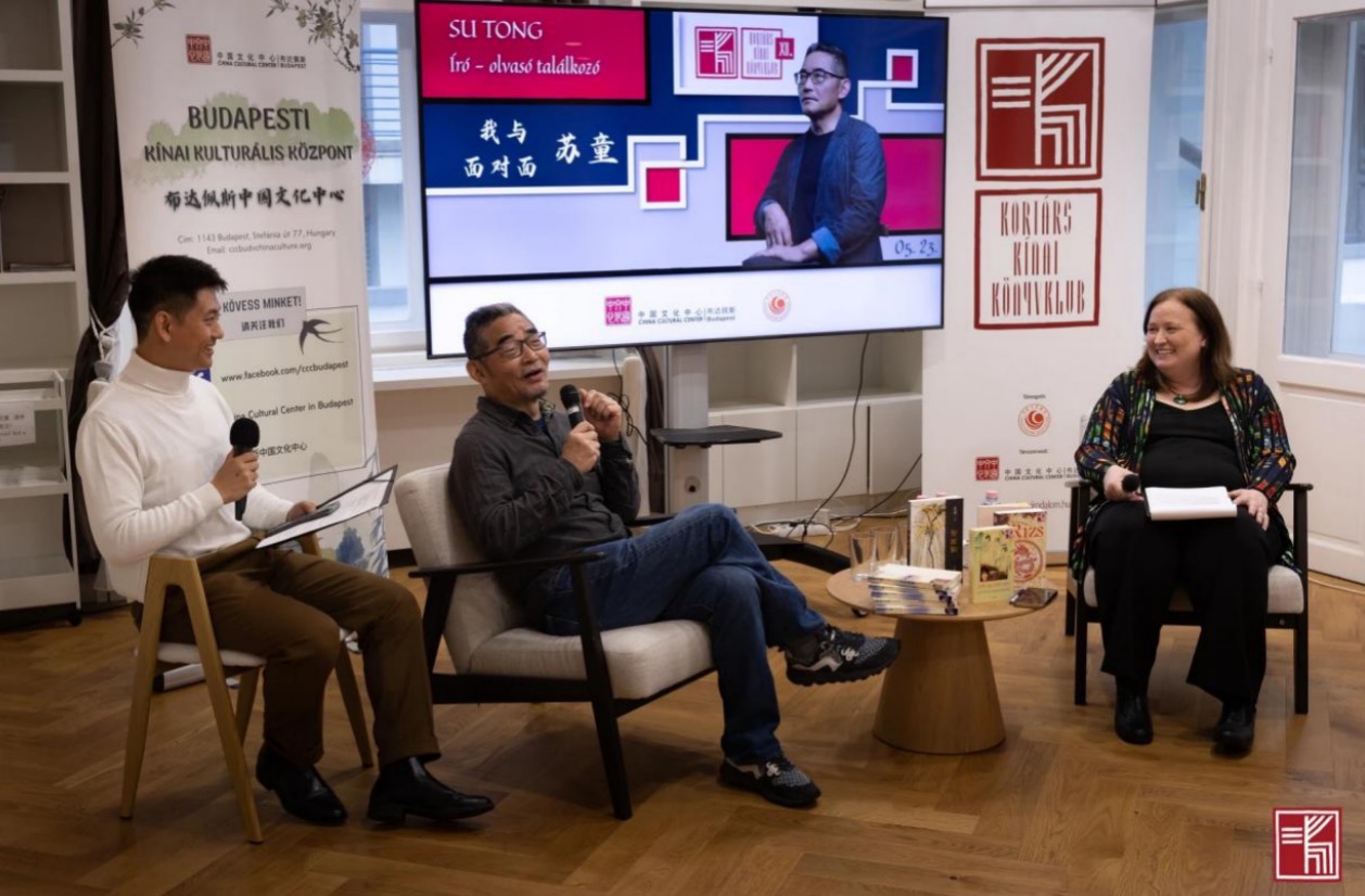 近日,在中國作協(xié)外聯(lián)部指導(dǎo)下,匈牙利中國文學(xué)讀者俱樂部與布達(dá)佩斯中國文化中心在布達(dá)佩斯共同舉辦了多場蘇童讀者見面會。著名作家、茅盾文學(xué)獎得主蘇童來到匈牙利,與當(dāng)?shù)刈x者面對面交流,受到熱烈歡迎。活動由匈中友好協(xié)會(MKBT)、匈牙利PRA公關(guān)公司、匈牙利《新導(dǎo)報》等協(xié)辦,由匈牙利中國文學(xué)讀者俱樂部負(fù)責(zé)人、資深漢學(xué)家、文學(xué)翻譯家宗博莉·克拉拉(Zombory Klára)主持。