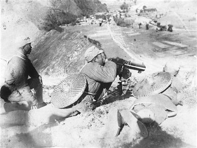 1940年8月20日至1941年1月24日,八路軍在華北對日軍發(fā)動一次大規(guī)模的進攻,陸續(xù)參戰(zhàn)部隊達105個團20余萬人,稱為百團大戰(zhàn),沉重打擊了日軍的侵略氣焰。圖為山西陽泉獅垴山戰(zhàn)斗中的八路軍機槍陣地。