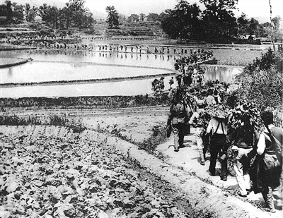 新四軍挺進華中敵后,廣泛發(fā)動群眾,開展抗日游擊戰(zhàn)爭,創(chuàng)建抗日根據(jù)地,開辟了廣闊的華中敵后戰(zhàn)場。圖為新四軍挺進敵后。