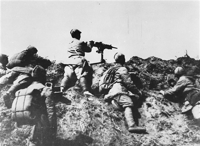 1937年日本侵略者蓄意制造七七事變,發(fā)動全面侵華戰(zhàn)爭。中國軍民對日本侵略者進行了頑強抵抗。中國由此進入全民族抗戰(zhàn)階段,并開辟了世界反法西斯戰(zhàn)爭的東方主戰(zhàn)場。圖為中國軍隊向進犯日軍還擊。