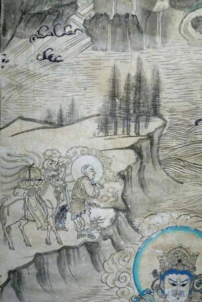 事實上在《西游記》成書(1592年金陵世德堂本)前,已有唐代《大唐三藏取經(jīng)詩話》、元代《西游記平話》、元末楊景賢雜劇《西游記》、明初《永樂大典》殘本“夢斬涇河龍”等多種版本書籍及雜劇流傳。另外,還有來自朝鮮的證據(jù):1370年的《樸通事諺解》記載的“車遲國斗圣”情節(jié)與今本高度相似。此外,還有考古發(fā)現(xiàn):1985年山西稷山青龍寺元代壁畫已有“孫悟空大戰(zhàn)牛魔王”場景。王靜如及敦煌研究院楊富學(xué)等認為,河西走廊一帶有多幅西夏時期《唐僧取經(jīng)》主題壁畫(早于《西游記》300年)中已有猴行者立于山澗旁的場景,這說明“猴王仙山”意象早有雛形。敦煌榆林窟第3窟西夏壁畫中,猴行者形象著漢式短衣,腰佩戒刀,與唐代武士裝束一致,印證護衛(wèi)身份。山東滕州玉皇頂發(fā)現(xiàn)了北宋崇寧四年(1105)的水月觀音像龕,像龕下方雕刻有僧人取經(jīng)圖,二僧一馬,后方僧人身后刻“觀音菩薩命唐三藏取經(jīng)回來”的題記,明確交代了圖像之唐僧取經(jīng)內(nèi)容。