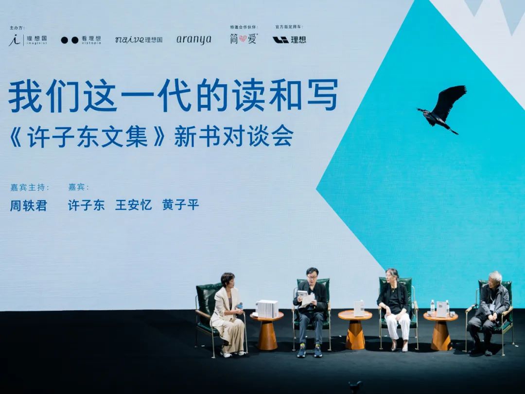 在《許子?xùn)|文集》新書對談會上,許子?xùn)|(左二)與王安憶(右二)、黃子平(右一)出席,周軼君擔(dān)任主持人。(圖/理想國 提供)