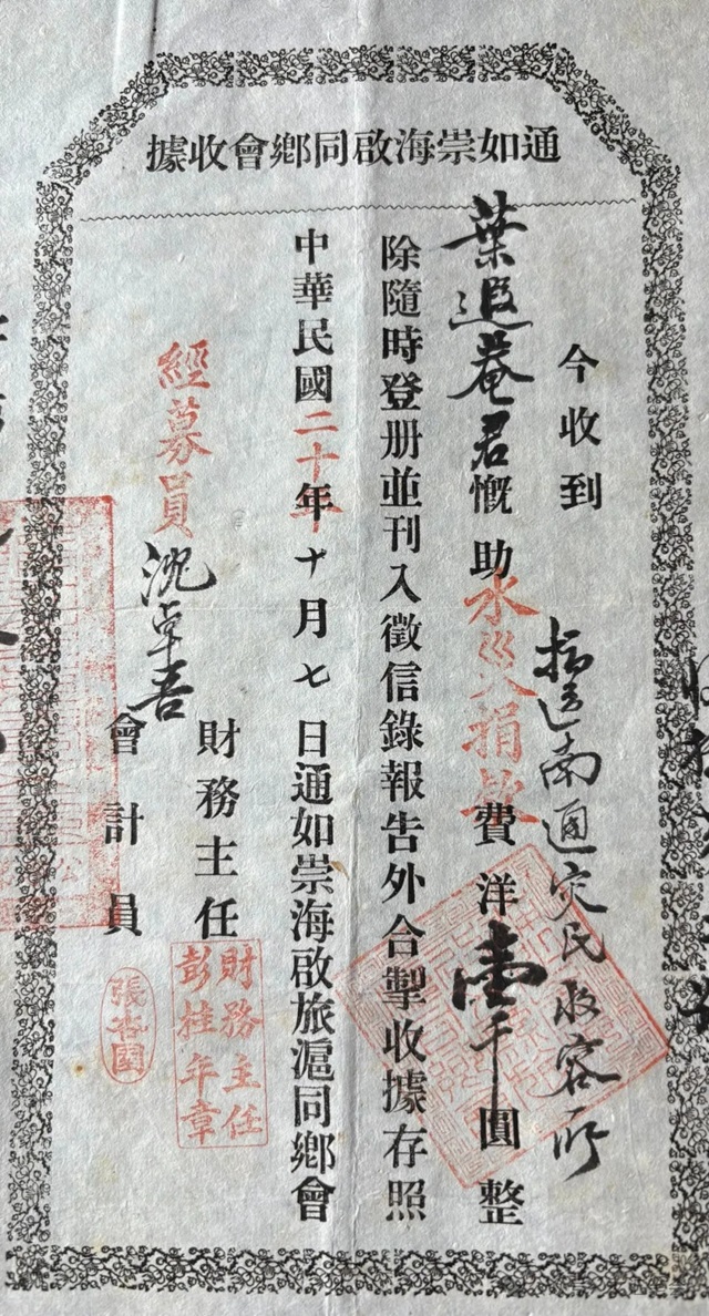 “葉遐輝”應(yīng)為葉遐庵,即便箋中的“遐公先生”。清點(diǎn)箋中所述七張收據(jù)(現(xiàn)存寒齋),葉恭綽共捐5000元。10月6日,沈卓吾向上海濟(jì)生會(會長王一亭)轉(zhuǎn)交500元。7日,他向通如崇海啟旅滬同鄉(xiāng)會轉(zhuǎn)交500元,用于南通災(zāi)民收容所。同日,沈卓吾又奔波于新華信托儲蓄銀行、上海商業(yè)儲備銀行,向如皋農(nóng)行、鎮(zhèn)江農(nóng)行、揚(yáng)州商會,分別匯出2000元。如皋災(zāi)民收容所負(fù)責(zé)人馬繼之于13日獲得1000元匯款。如皋育嬰堂兒童留養(yǎng)所負(fù)責(zé)人黃哲人(慈善家,逝后熊希齡、居正皆題字)獲得500元匯款。沈卓吾半歲失怙,一路艱辛,入讀如皋孤幼學(xué)堂(晚清進(jìn)士周景濤創(chuàng)辦),他因此很關(guān)愛孤兒,才請友人向如皋育嬰所捐款。為示謝意,如皋縣收容沿運(yùn)災(zāi)民委員會、如皋縣育嬰所,在《如皋報》《皋報》上刊出《感謝大善士葉遐菴、沈卓吾兩先生》等廣告。如皋災(zāi)民收容所四處救濟(jì)災(zāi)民,感染了麻風(fēng)專家海深德(LeeSjoerdsHuizenga)。他致函收容所:“貴會博愛為懷,設(shè)收容所,敝國人士,靡不欽佩?!焙at(yī)師也籌資600元,購辦寒衣棉被,送至西門外收容所。他還去南門外收容所義務(wù)出診。(1931年10月16日《皋報·捐款賑災(zāi)沿運(yùn)災(zāi)民》)
