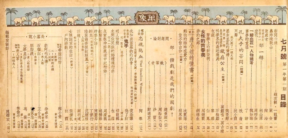 新文學和通俗文學在同一個刊物上亮相,這是第一次。能夠做到這一點,邁出這一步的就是陳蝶衣。創(chuàng)刊號大受歡迎,印了六次?!度f象》一炮打紅,在上海灘站住了腳。