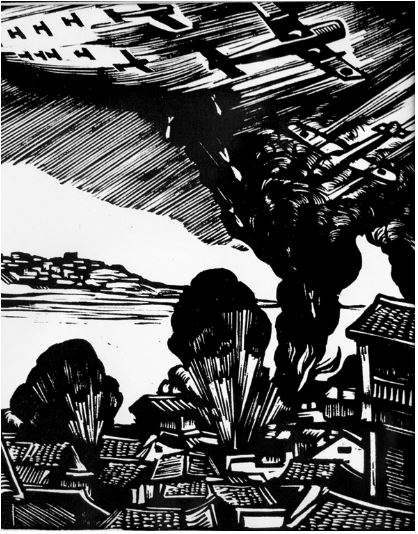 1938年7月,他們?cè)谥貞c市商會(huì)禮堂舉辦的“七七抗戰(zhàn)一周年抗戰(zhàn)木刻畫展”被視為大后方抗戰(zhàn)木刻運(yùn)動(dòng)從興起走向全面發(fā)展的標(biāo)志。展覽開(kāi)幕第二天,重慶《國(guó)民公報(bào)》即以《大時(shí)代中的藝術(shù)·木刻在渝初次展覽》為題刊發(fā)了長(zhǎng)篇特寫,文中寫道:“一個(gè)團(tuán)結(jié)而集體地把多量的木刻杰作呈現(xiàn)在重慶士人面前,在重慶還是破題兒的第一遭。因?yàn)樗且环N新興藝術(shù)而又是以抗戰(zhàn)為題材的作品,所以昨天前往參觀的人實(shí)在不在少數(shù),統(tǒng)計(jì)下來(lái)觀眾一天之內(nèi)不下千余人。木刻共有一百七十余幅,同時(shí)木刻畫集也在展覽之列。參加展覽的有劉峴、酆中鐵、王大化、劉鳴寂、馬達(dá)、黃云等作家十余人,以酆中鐵、王大化的作品最多。他們都把握著時(shí)代,針對(duì)著‘抗敵’為前程的。這些藝人們用盡心血戳出來(lái)的東西,是充分暴露敵人的殘酷,同胞們的受辱。力的演出,我們要吶喊,我們要怒吼!每幅畫讓你興奮,讓你悲憤,讓你痛心,緊緊地刺激你的心坎?!?/p>