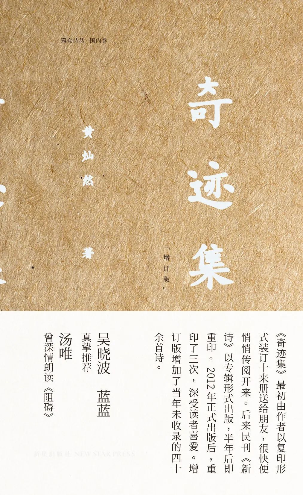 黃燦然,詩人、翻譯家、評(píng)論家,生于1963年,福建泉州人。1978年移居香港,1988年畢業(yè)于暨南大學(xué)新聞系,1990—2014年任職于香港《大公報(bào)》,從事國際新聞翻譯。著有詩集《奇跡集》、《黃燦然的詩》和兩卷本《詩合集》(繁體字版)等。譯有《卡瓦菲斯詩集》、《巴列霍詩選》、蘇珊·桑塔格《論攝影》、布羅茨基《小于一》等;近期譯著有《曼德爾施塔姆詩選》、《一只狼在放哨:阿巴斯詩集》、《希尼三十年文選》、希尼《開墾地:詩選1966—1996》、《致后代:布萊希特詩選》、《站在人這邊:米沃什五十年文選》、《火:魯米抒情詩》、《死亡賦格:保羅·策蘭詩精選》等。