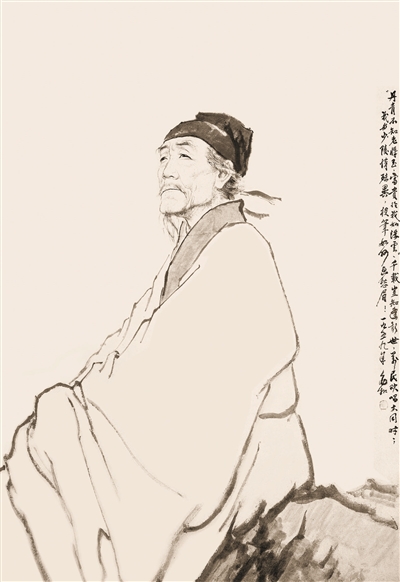 “往還古今”單元選取了蔣兆和大量以歷史人物為題材創(chuàng)作的作品。其中包括眾所周知的《杜甫》及其畫稿、《太白沉思》《李清照像》《悠然見南山》《司馬遷》等代表作。此類人物創(chuàng)作因缺乏明確的形象依據(jù),畫家只能以心為炬,借古人史傳與作品去想象其風(fēng)采,感受其心境,也因此更能體現(xiàn)蔣兆和筆墨意趣的抒發(fā)、情感心緒的表達(dá)。如在《杜甫》這件作品中,我們不僅能夠看到蔣兆和在上世紀(jì)50年代為將白描、骨法用筆等中國(guó)傳統(tǒng)筆墨技法融入人物畫造型而作出的卓絕努力,同時(shí)也能通過(guò)人物塑造的精彩處體會(huì)到他“為民寫真”的創(chuàng)作思路與杜甫憂國(guó)憂民的現(xiàn)實(shí)主義精神之間的情感呼應(yīng)。