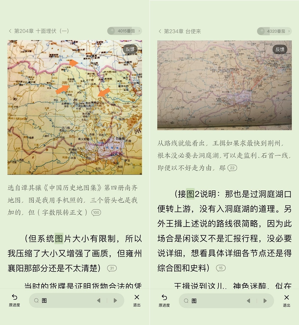 《冒姓瑯琊》對(duì)歷史文獻(xiàn)的考據(jù)詳實(shí),圖為作者在作品注釋部分引用的《中國(guó)歷史地圖集》南齊時(shí)期地圖內(nèi)容。