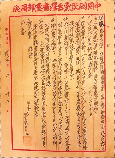 臺(tái)灣光復(fù)謝恩團(tuán)事,蒙鼎力協(xié)助,幸得成就。茲因人欸均定,各事略訣,謹(jǐn)請(qǐng)預(yù)為準(zhǔn)備各項(xiàng)如下: