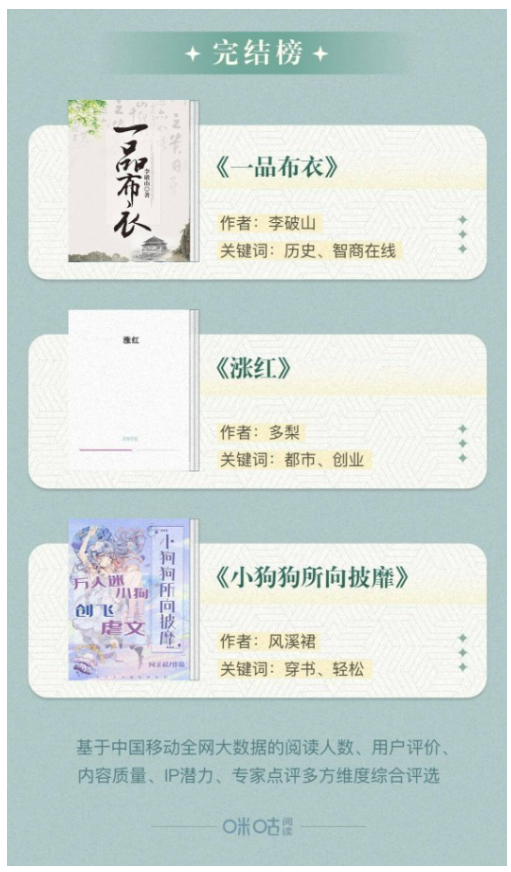 文化質(zhì)感與思想厚度兼具 ,咪咕“悅讀好書榜” 第八期彰顯網(wǎng)文創(chuàng)作深度