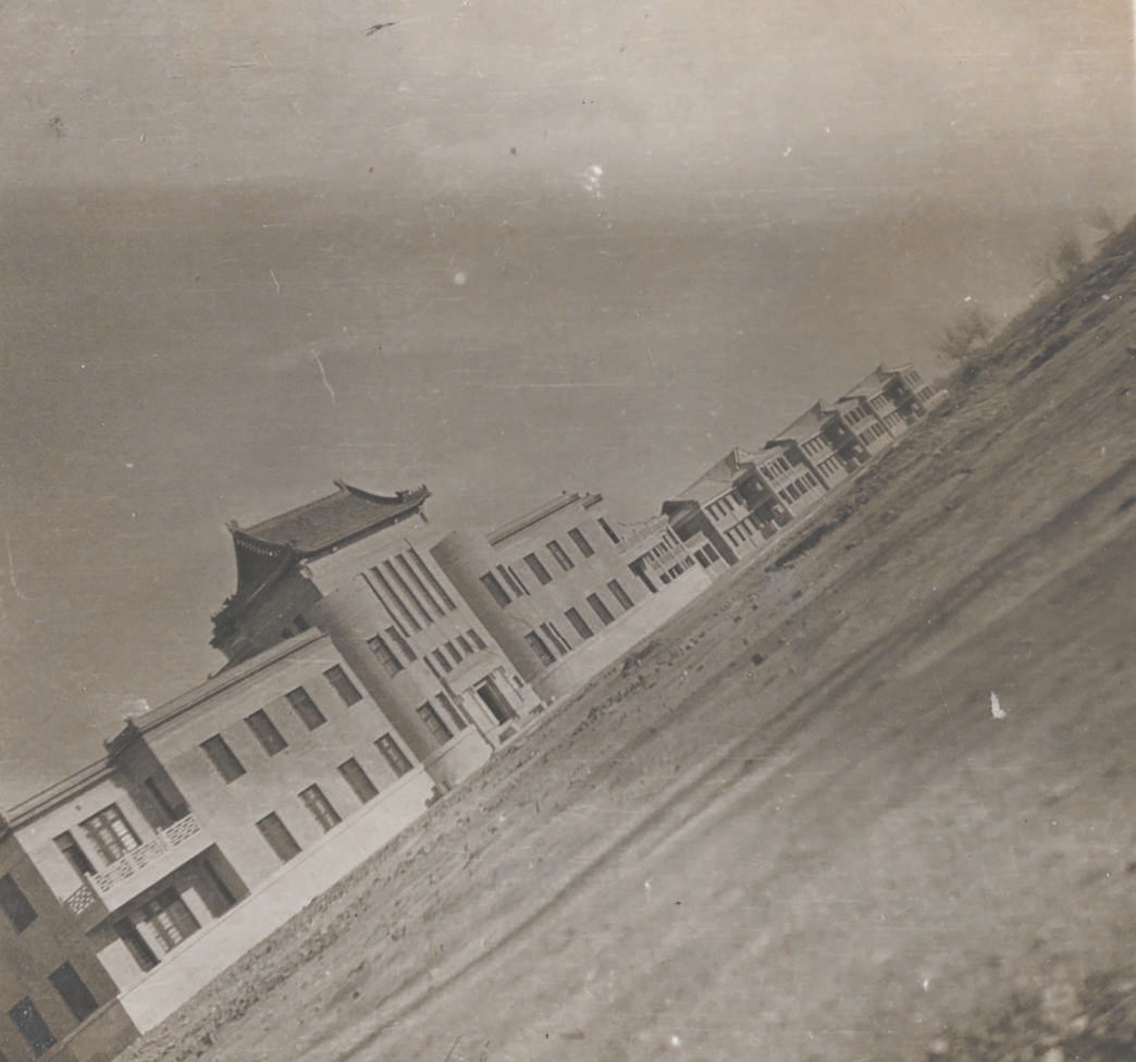 “飛機樓”就是在這一時期建造的。此樓的設(shè)計者是青年建筑師徐仁祥,施工則由泰慶建筑工程公司負責(zé)。1941年10月,包括“飛機樓”在內(nèi)的土木工程??茖W(xué)校新校區(qū)主體建筑群宣告竣工,幾年后,又在其東側(cè)添建了一組中式風(fēng)格的二層樓房,作為校舍使用。