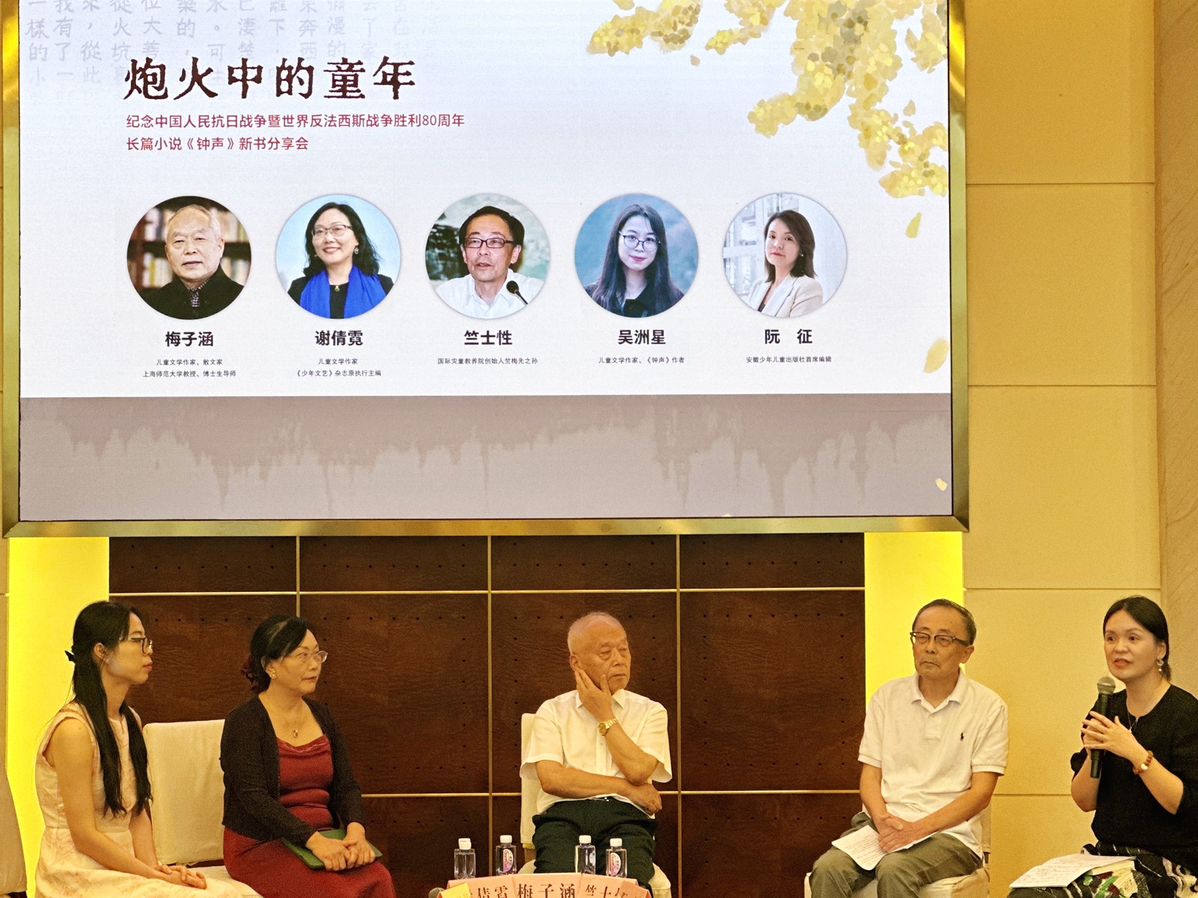 8月15日,為紀念中國人民抗日戰(zhàn)爭暨世界反法西斯戰(zhàn)爭勝利80周年,由安徽少年兒童出版社與寧波市文學藝術界聯(lián)合會聯(lián)合主辦的長篇小說《鐘聲》新書分享會,在上海書展期間舉行。