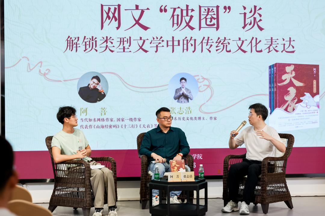8月16日、17日下午,百萬暢銷書《山海經(jīng)密碼》作者阿菩攜新書《天衣》,與B站百萬博主張志浩、阿排,分別以“網(wǎng)文‘破圈’談”和“拆解爆款網(wǎng)文邏輯”為話題,暢聊網(wǎng)絡(luò)文學(xué)與當(dāng)下的大眾閱讀。