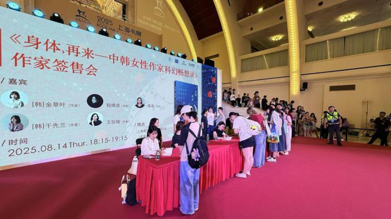 8月14日,中韓女性科幻作家現(xiàn)場簽售會在2025上海書展中心活動區(qū)舉辦。(受訪機(jī)構(gòu)供圖)