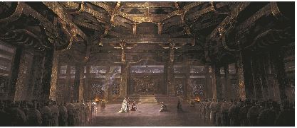 電影美術(shù)指導(dǎo)在影片創(chuàng)作中承擔(dān)著至關(guān)重要的角色。他們不僅是場景的搭建者和造型的設(shè)計(jì)者,更是通過視覺元素構(gòu)建世界觀、營造情感氛圍、傳遞文化內(nèi)涵的核心創(chuàng)作者。從場景布置到道具選擇,從服裝設(shè)計(jì)到光影運(yùn)用,美術(shù)指導(dǎo)需要在每一個(gè)細(xì)節(jié)中無聲地講述故事,為觀眾搭建起真實(shí)可信的銀幕世界。葉錦添在一系列影視和舞臺作品中展現(xiàn)了獨(dú)特的東方審美特質(zhì),尤其在“封神三部曲”中,他更是重新詮釋了神話時(shí)空,將東方美學(xué)與神話意境完美融合。作為不斷跨界的探索者,葉錦添的多元實(shí)踐為當(dāng)代藝術(shù)創(chuàng)作提供了寶貴的經(jīng)驗(yàn)和啟示。