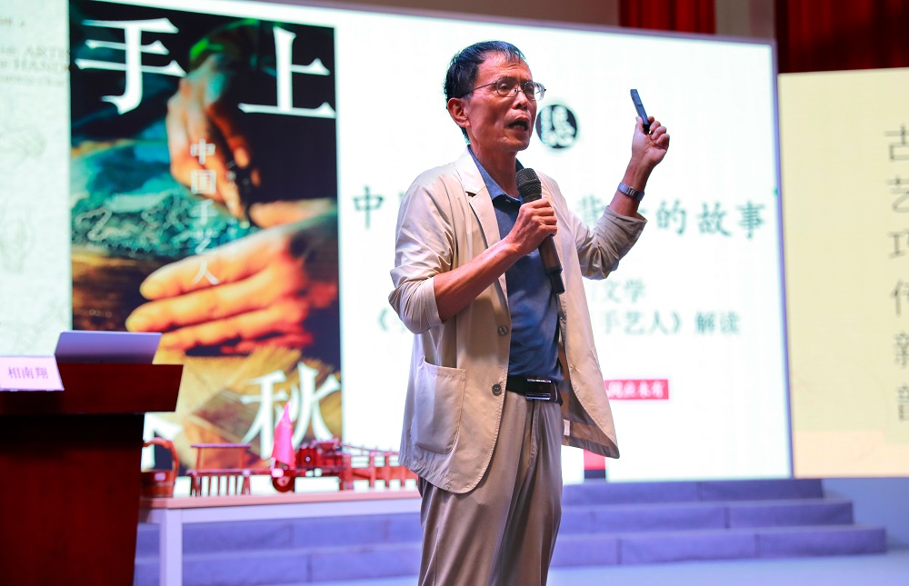 首發(fā)式結(jié)束后,“鑿刻時(shí)光”文化講座開講,特邀深圳大學(xué)教授、作家南翔主講,以“手上春秋——中國(guó)手藝人的故事”為主題,引領(lǐng)現(xiàn)場(chǎng)觀眾走進(jìn)一段段深沉而溫暖的手藝時(shí)光,感受傳統(tǒng)手藝背后敬業(yè)、專注的工匠精神。