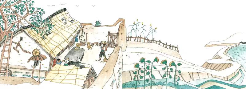 故土難離,繪本中深情描繪了爺爺對往日生活的眷戀。當曾書記帶著爺爺再次返回,看到熟悉的院子時,爺爺眼中泛起了淚花。這不僅是爺爺一個人的牽掛,更是無數(shù)離開村莊的人心中難以割舍的根脈與鄉(xiāng)愁。讓人沒想到的是,曾書記看出了爺爺對那口大缸的不舍,便想辦法把大缸從山上搬到了山下。