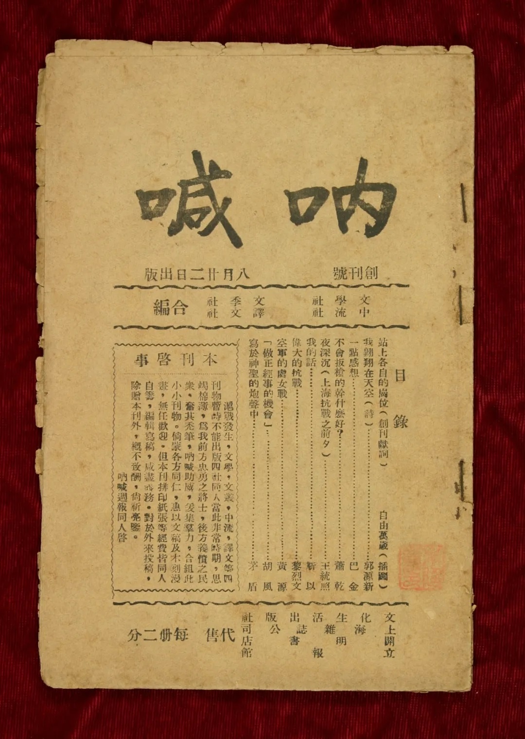 《吶喊》創(chuàng)刊號。中國現(xiàn)代文學館藏。