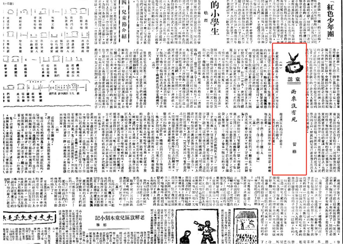 管樺《雨來沒有死》,1949年4月4日《人民日報(bào)》第4版