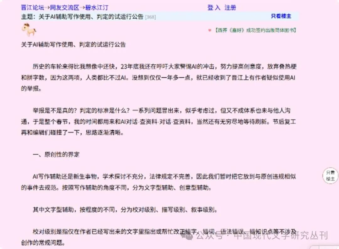 晉江文學城的讀者們對能否接受作者使用AI輔助寫作的探討