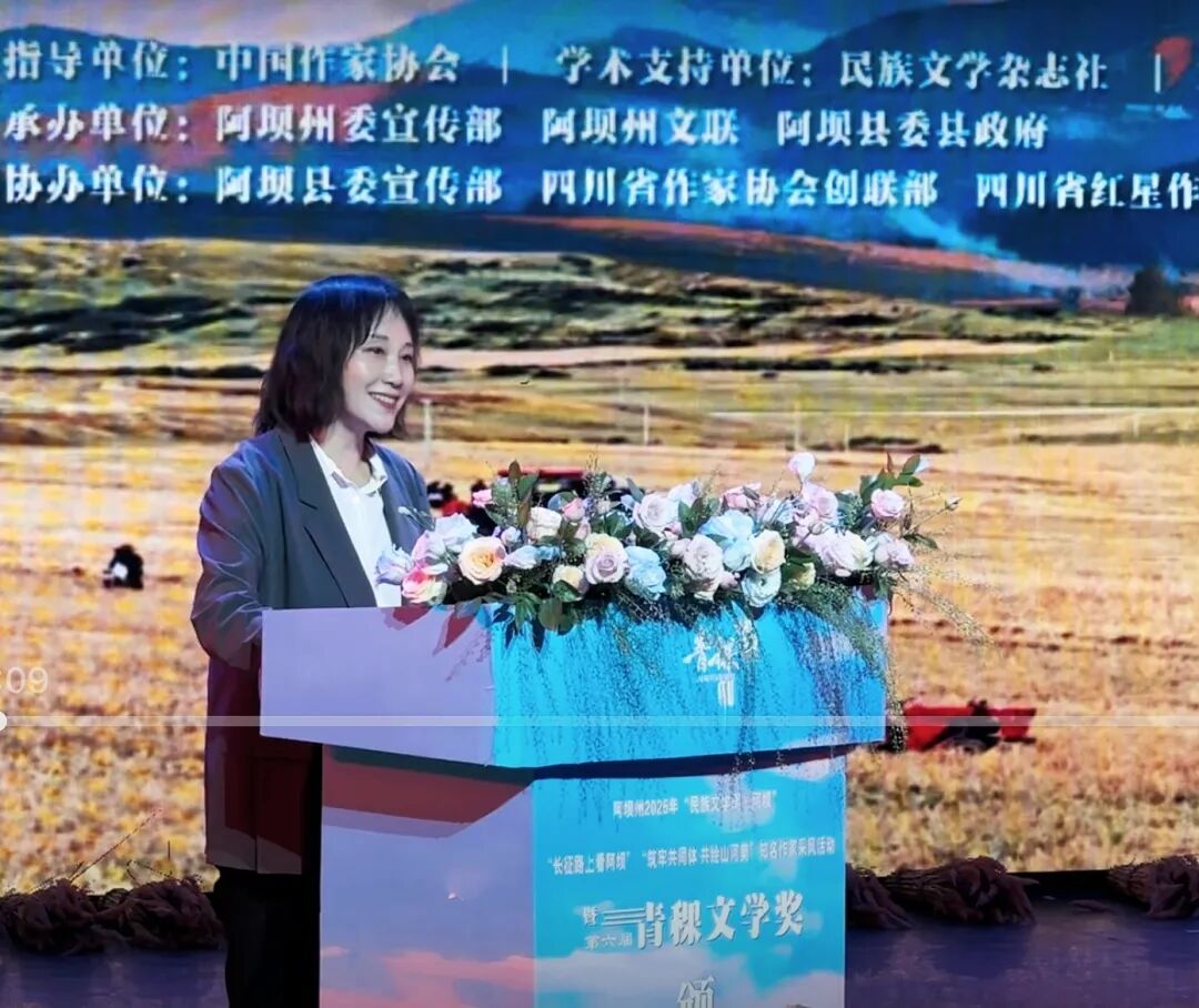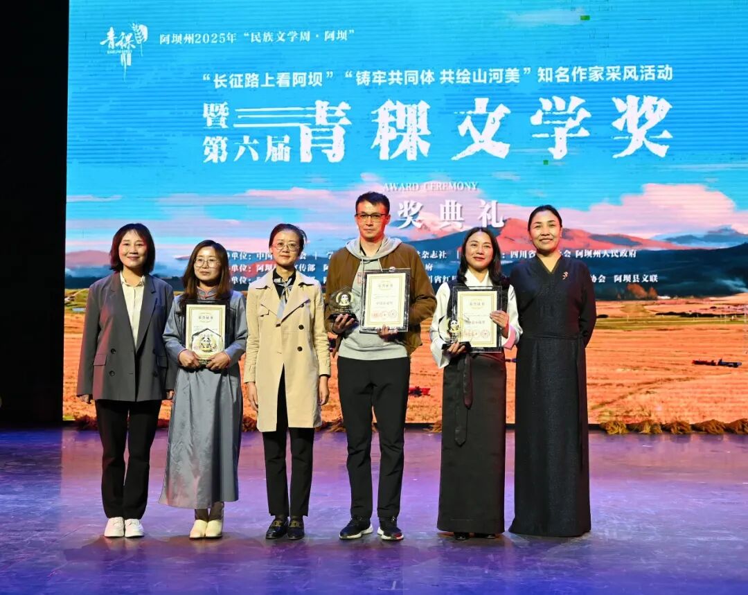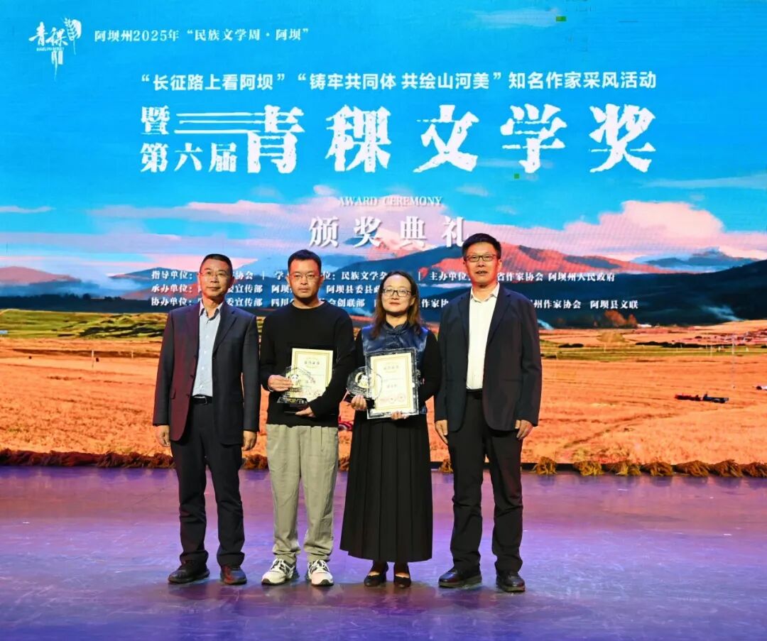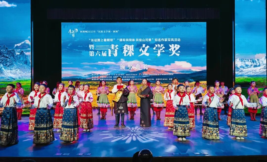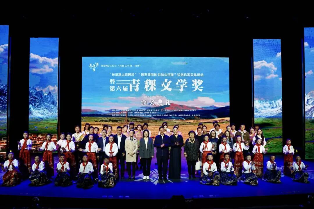 2025年“民族文學(xué)周·阿壩”活動(dòng)期間,由民族文學(xué)雜志社提供學(xué)術(shù)支持,四川省作家協(xié)會(huì)、四川阿壩州人民政府主辦,阿壩州委宣傳部、阿壩州文聯(lián)、阿壩縣委、縣政府承辦,阿壩縣委宣傳部、四川省作家協(xié)會(huì)創(chuàng)聯(lián)部、四川省紅星作家協(xié)會(huì)(省直作協(xié))、阿壩州作家協(xié)會(huì)、阿壩縣文聯(lián)協(xié)辦的第六屆青稞文學(xué)獎(jiǎng)?lì)C獎(jiǎng)典禮于9月8日晚在四川阿壩州阿壩縣成功舉辦。中國(guó)作協(xié)黨組成員、書(shū)記處書(shū)記李一鳴,《民族文學(xué)》主編陳亞軍、副主編朱鋼,四川省人大常委會(huì)委員、省人大監(jiān)察和司法委副主任委員、中國(guó)作協(xié)南亞國(guó)際文學(xué)交流中心執(zhí)行主任、四川省作協(xié)副主席侯志明,四川省作協(xié)黨組副書(shū)記魯娟,中共阿壩州委常委、宣傳部部長(zhǎng)依當(dāng)措,阿壩州委常委、阿壩縣委書(shū)記馮崢勇,阿壩州政協(xié)副主席何曉兵,阿壩州文聯(lián)黨組書(shū)記、主席阿郎,阿壩縣委副書(shū)記陳波,阿壩縣委常委、副縣長(zhǎng)唐建勇,王懷林、范穩(wěn)、馬麗華、魯若迪基、尼瑪潘多、譚五昌、衣向東、巴久烏嘎、王麗一、楊國(guó)鋒等知名作家、第六屆青稞文學(xué)獎(jiǎng)獲獎(jiǎng)作家,以及阿壩州作家代表、阿壩縣機(jī)關(guān)干部、學(xué)生群眾代表等齊聚一堂,共同見(jiàn)證這一文學(xué)盛會(huì)。