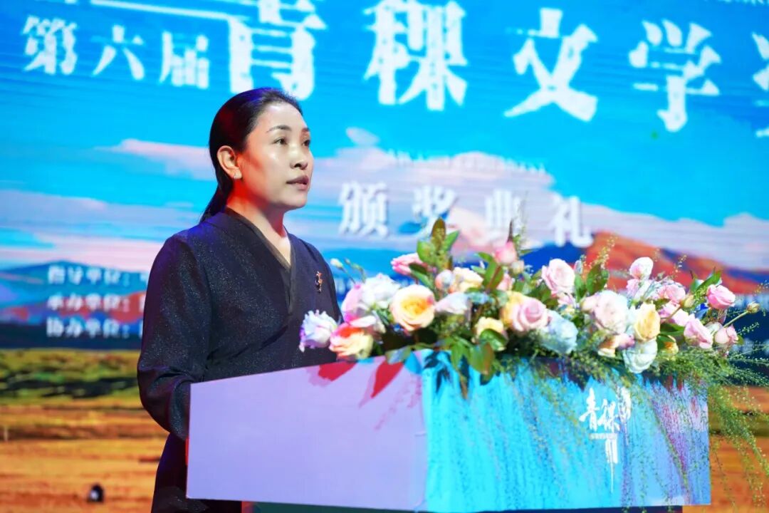 依當(dāng)措在致辭中說(shuō),青稞生于苦寒,長(zhǎng)于風(fēng)霜,卻結(jié)出滋養(yǎng)生命的果實(shí)。以它命名的文學(xué)獎(jiǎng),亦承載著在蒼茫高原之上,寂靜生長(zhǎng),文字如穗,漸成信仰的精神。阿壩州地處青藏高原東南緣,是全國(guó)唯一的藏族羌族自治州。這里有“童話世界”九寨溝、“人間瑤池”黃龍、中國(guó)戶外第一山——四姑娘山、若詩(shī)若畫(huà)若爾蓋大草原、東方的魔幻世界蓮寶葉則等世界知名景點(diǎn),是全球擁有世界自然遺產(chǎn)數(shù)量最多的地區(qū)之一,是生態(tài)文明示范地、長(zhǎng)江黃河上游重要的生態(tài)屏障和水源涵養(yǎng)區(qū)。這里是多彩人文綻放地。紅軍長(zhǎng)征在阿壩創(chuàng)造了駐留時(shí)間最長(zhǎng)、召開(kāi)重要會(huì)議最多、軍民關(guān)系最濃厚等“七個(gè)之最”,留下了“牦牛革命”的動(dòng)人詩(shī)篇。全州擁有羌年等4項(xiàng)世界級(jí)非遺,有各類不可移動(dòng)文物2132處,國(guó)家級(jí)非遺項(xiàng)目23項(xiàng)、省級(jí)非遺項(xiàng)目101項(xiàng),被譽(yù)為“民族文化大走廊”“露天歷史博物館”。這里,是文旅發(fā)展引領(lǐng)地。黃龍成功入選世界自然保護(hù)聯(lián)盟綠色名錄,成為全球最佳自然保護(hù)地之一,桃坪羌寨是全省唯一的世界最佳旅游鄉(xiāng)村。誠(chéng)摯邀請(qǐng)各位作家老師們,常來(lái)阿壩行走、采風(fēng)、書(shū)寫(xiě)。讓你們的筆觸,深入牛羊漫步的牧場(chǎng)、阡陌縱橫的山村,真正走進(jìn)各族群眾火熱的現(xiàn)實(shí)生活,走進(jìn)高質(zhì)量發(fā)展的生動(dòng)實(shí)踐,講述阿壩的故事,讓更多的人通過(guò)文學(xué)作品了解阿壩、認(rèn)識(shí)阿壩、走進(jìn)阿壩、愛(ài)上阿壩。