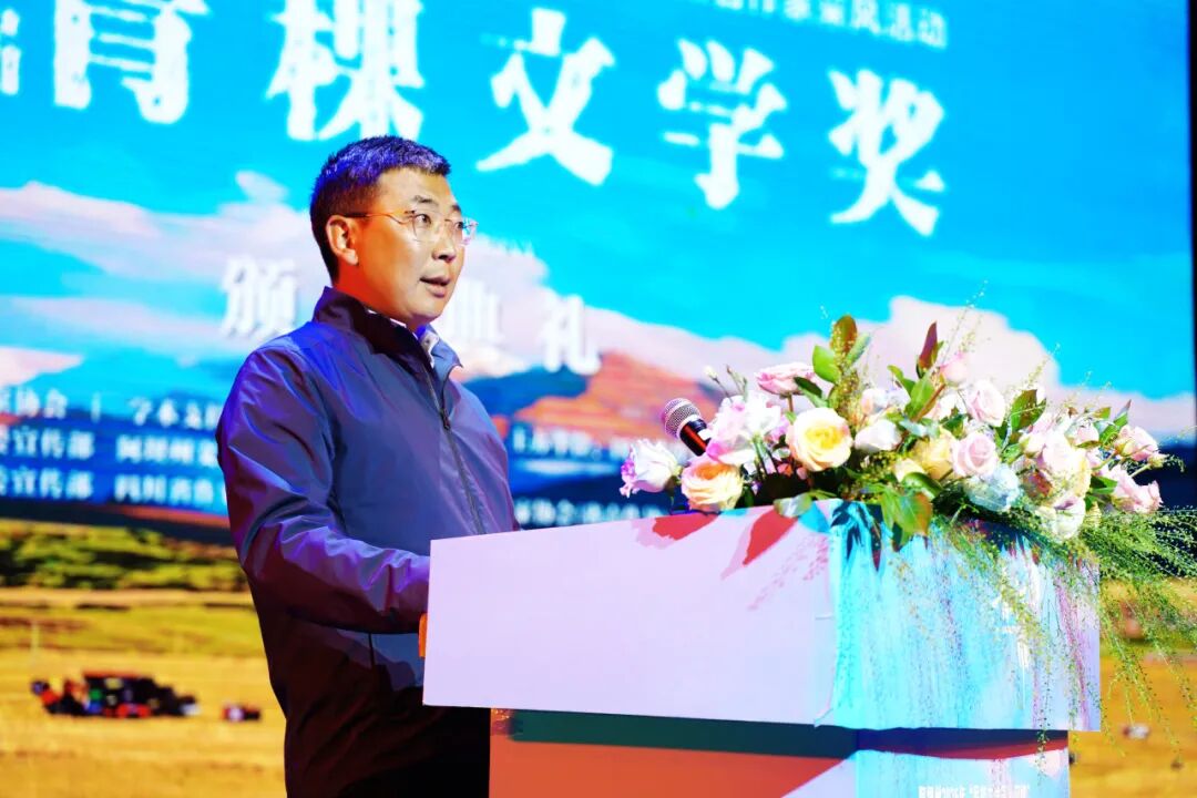 陳波在歡迎詞中表示,“青稞文學(xué)獎(jiǎng)”自設(shè)立以來(lái),阿壩縣始終秉持繁榮社會(huì)主義多民族文學(xué)創(chuàng)作的宗旨,堅(jiān)持以青稞文化為紐帶,將全國(guó)各地作家的智慧與才華匯聚于此,讓各類優(yōu)秀作品在這片土地上生根發(fā)芽。歷經(jīng)六屆的沉淀與發(fā)展,“青稞文學(xué)獎(jiǎng)”已經(jīng)成為推動(dòng)民族文學(xué)發(fā)展、促進(jìn)文化交流的一面旗幟,也成為阿壩縣走出高原、邁向全國(guó)的一張靚麗文化名片,這不僅是文學(xué)的豐收,更是時(shí)代的見(jiàn)證。作為青稞文學(xué)獎(jiǎng)永久頒獎(jiǎng)地,這是一份無(wú)比珍貴的榮譽(yù),更是一份沉甸甸的責(zé)任。站在新的發(fā)展階段,我們將全力為“青稞文學(xué)獎(jiǎng)”的持續(xù)發(fā)展提供堅(jiān)實(shí)保障,以更加開(kāi)放包容的姿態(tài),著力推動(dòng)傳統(tǒng)文化與當(dāng)代文學(xué)融合發(fā)展,深入挖掘紅軍長(zhǎng)征、唐卡非遺等文化資源,讓阿壩縣成為文學(xué)創(chuàng)作的靈感源泉和精神家園,讓更多的人透過(guò)文學(xué)領(lǐng)略阿壩高原壯麗之美、探索民族文化之魂,讓這一文學(xué)盛事在阿壩縣綻放更加耀眼的光彩。