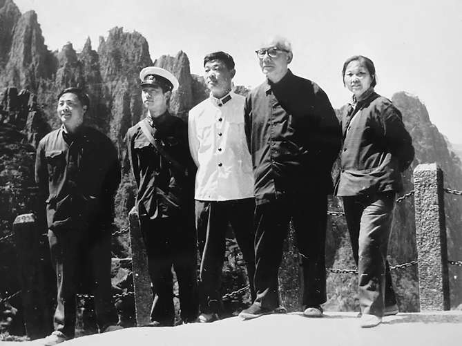 1978年,楊列章(左三)與李可染夫婦在黃山,左一為方鏡亮
