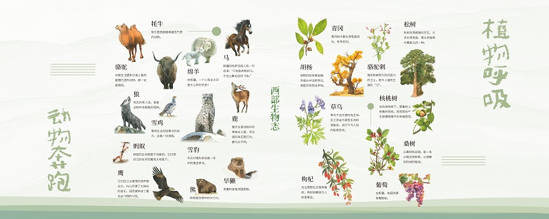 《植物呼吸,動物奔跑——西部生物志》以個人化的文學(xué)散文形式,深入描繪了西部尤其是新疆、西藏、甘肅等地60種動植物的生命故事。作品不僅介紹了這些生物的自然屬性,更深入挖掘了其歷史淵源、文化象征及與人類交織的復(fù)雜關(guān)系。書中大量生動細節(jié)展現(xiàn)了西部生物在極端環(huán)境下的生存智慧,如植物在風(fēng)雨中的固守、動物在凜冽中的奔徙,從而揭示出它們作為“大地之子”與人類同行的深層價值。