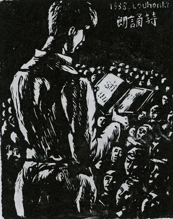 “啊,你”單獨成行,在朗誦時強(qiáng)化了把聽眾指認(rèn)為“小婦”的聽覺效果,從而進(jìn)一步模糊文本的內(nèi)外界限。借由具體的音響形式,艾青在抒情主人公“我”、作為詩歌表現(xiàn)對象的“小婦”和聽眾之間強(qiáng)化了連帶感。詩歌結(jié)尾處,“中國”與“農(nóng)人”“小婦”一樣,在詩歌內(nèi)部成為“我”的傾訴對象,因而在朗誦中,“中國”和聽眾的位置同樣重合起來:“中國,/我的在沒有燈光的晚上/所寫的無力的詩句/能給你些許的溫暖么?”當(dāng)朗誦者讀出“中國”時,聽眾仿佛聽到對方在呼喚自己,他們不僅可以代入“我”的位置,借助“我”的目光體認(rèn)“中國”,更直接被指認(rèn)為“中國”,與“農(nóng)人”“小婦”一起構(gòu)成“中國”概念的具體化身。