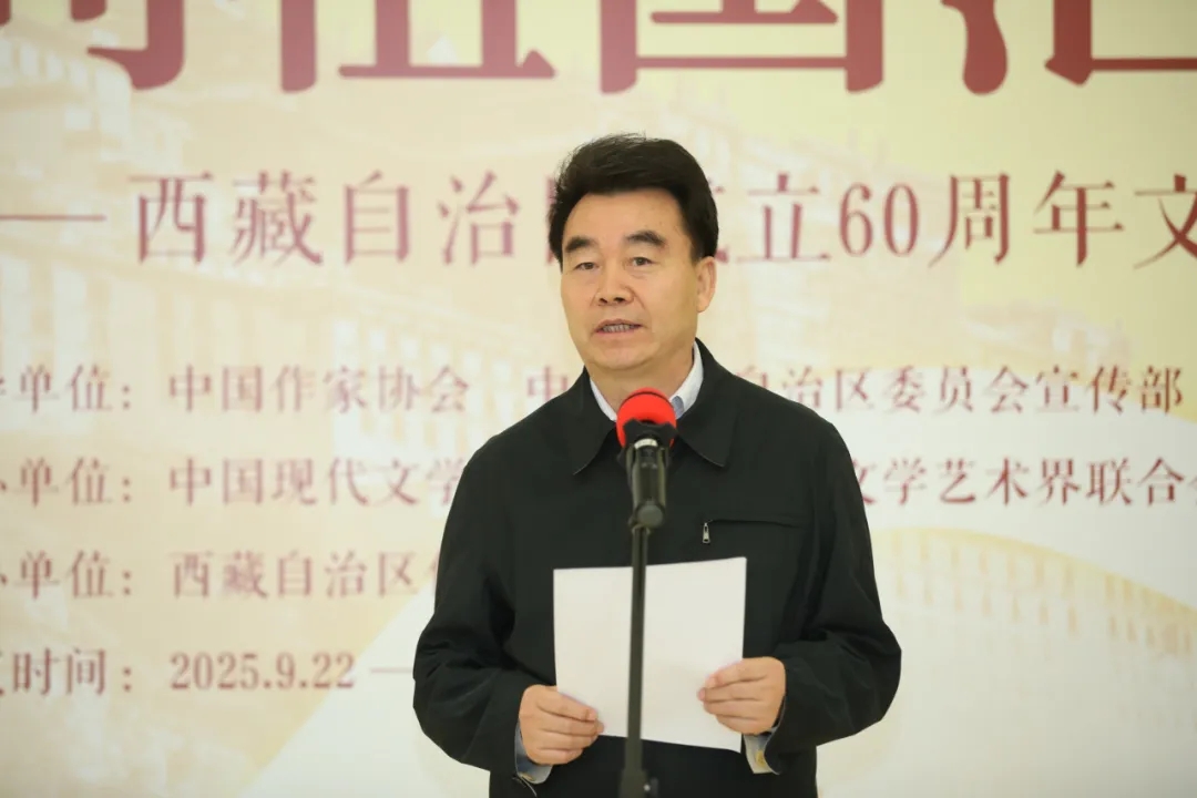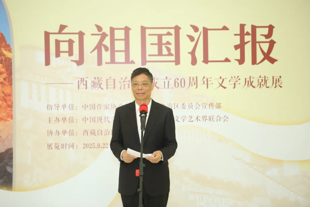 汪海洲表示,“向祖國匯報——西藏自治區(qū)成立60周年文學(xué)成就展”是西藏自治區(qū)成立60年來第一次在京舉辦的文學(xué)類展覽,旨在全景展現(xiàn)西藏文學(xué)及廣大作家深入踐行習(xí)近平文化思想,在時代發(fā)展中堅持傳統(tǒng)與現(xiàn)代、敘事與抒情相結(jié)合,為人民書寫、為人民放歌的美好景象,展現(xiàn)西藏60年來文學(xué)創(chuàng)作的輝煌成績。此次展覽承載著西藏作家對黨和國家的赤子之心,凝聚著雪域兒女對中華文化的熱愛,為展示社會主義現(xiàn)代化新西藏的良好形象發(fā)揮了積極作用。希望廣大作家以鑄牢中華民族共同體意識、推進中華民族共同體建設(shè)為主線,從各族干部團結(jié)一心、努力拼搏建設(shè)社會主義現(xiàn)代化新西藏的火熱實踐中汲取養(yǎng)分,用文學(xué)的表達講好新時代新西藏的故事,推出更多無愧于時代、無愧于人民的優(yōu)秀文學(xué)作品。