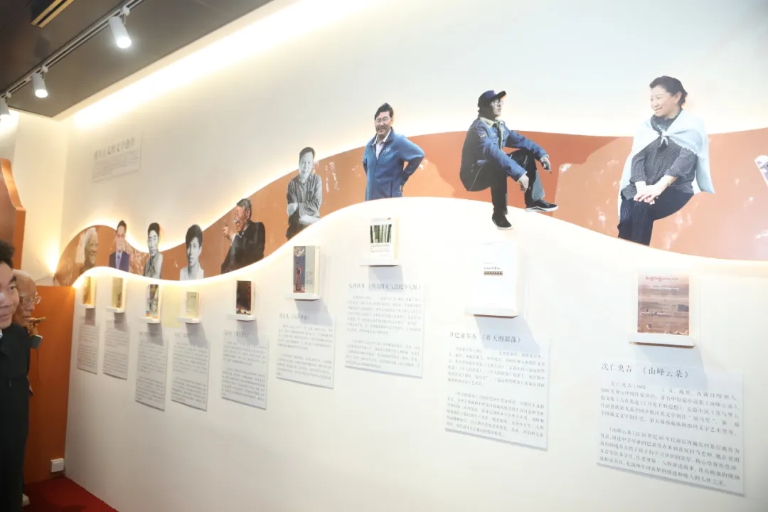 開幕式結(jié)束后,與會領(lǐng)導(dǎo)和嘉賓共同參觀了“向祖國匯報——西藏自治區(qū)成立60周年文學(xué)成就展”。